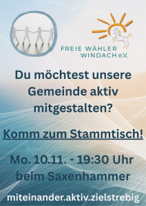 Am 10.11. laden wir um 19:30 alle interessierten Bürgerinnen und Bürger zu einem offenen Stammtisch im Saxenhammer ein. Unsere Themen: